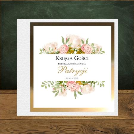 Piwinie ciemny róż. Księga gosci komunijnych. Księga biała