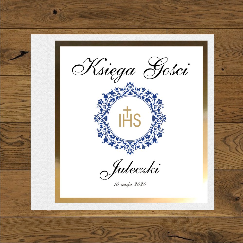 Zaproszenia komunijne glamour. Hostia granatowa fantazyjna