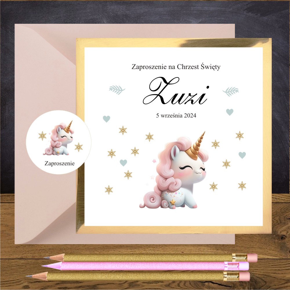 Kod wzoru: Zaproszenia na chrzest dla dziewczynki Jednorożec