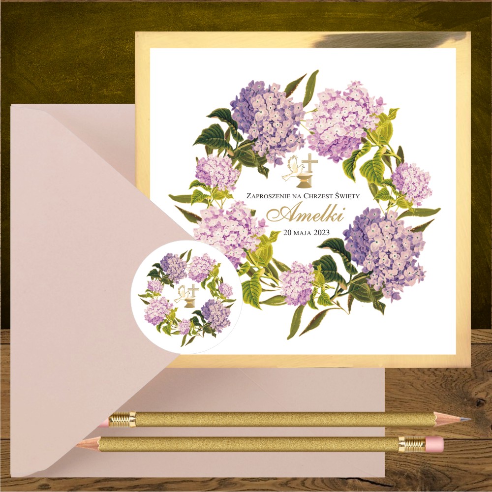 Kod wzoru: Zaproszenia na chrzest dla dziewczynki z rózowymi hortensjami w wianku