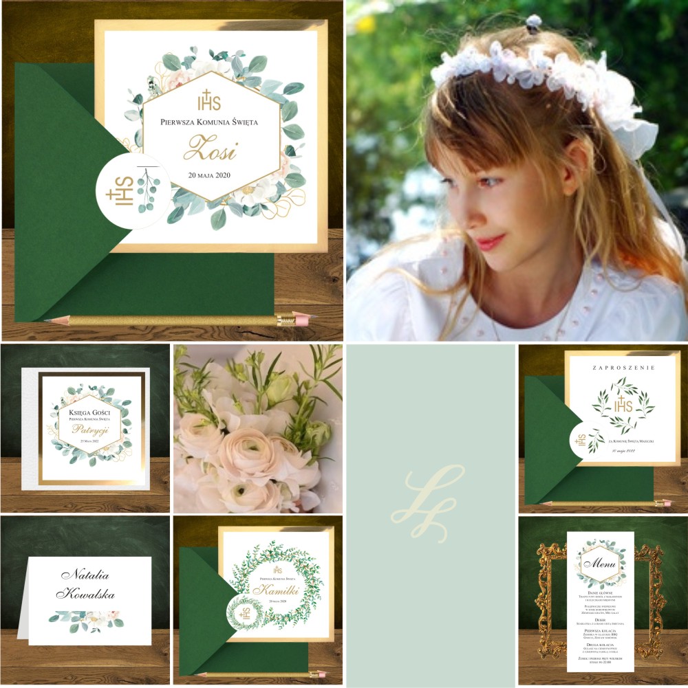 Zaproszenia na komunię znajdziecie Państwo na naszej stronie internetowej. Księgi gości, winietki na stół dla gościa, przywieszki do prezencików, banerek z imieniem dziecka przyjmujacego komunię. Mamy olbrzymi wybów zaproszeń w stylu glamour i eleganckim. Zaproszenia dla chłopców z granatowymi kopertami i dla dziewczynki w pastelowej kolorystyce różu czy ecru. Większość zaproszeń jest bardzo uniwersalna, klasyczna. Idealna dla każdego dziecka. Zaproszenia mogą byż personalizowane w środku personaliami gości lub możemy zostawić miejsce na wpisanie gościa.