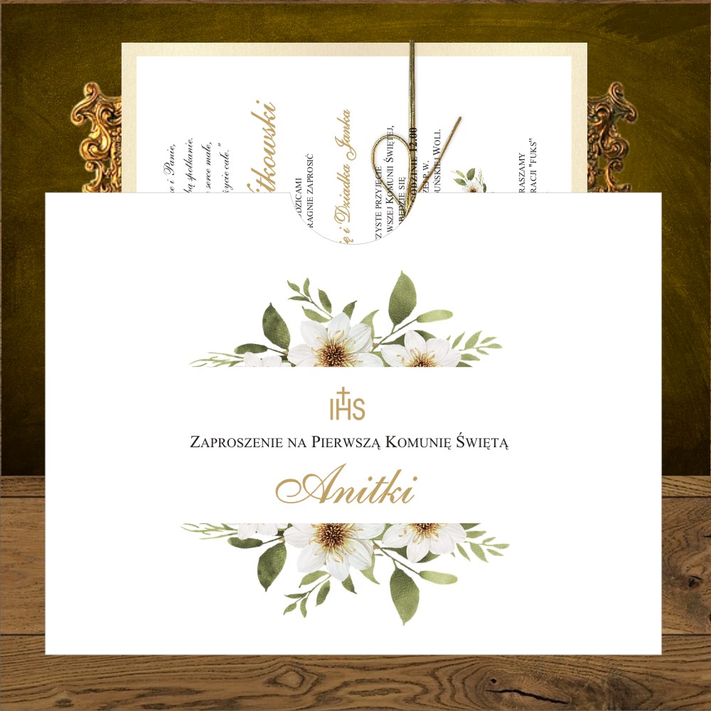 Co to znaczy, że zaproszenia na komunię są personalizowane? To znaczy, że zaproszenia mogą mieć dowolną treść przysłaną przez Ciebie. Można skorzystać z naszych tekstów, które mamy na stronie internetowej, ale możesz też przysłać nam calkowicie inny tekst niż te, które mamy w swoich przykładach. Zaproszenia mogą mieć zostawione miejsce na personalia Twoich gości, ale możemy też nadrukować personalia w zaproszeniach. Potrzebujemy wtedy listę gości sprządzona według naszych wytycznych: czyli bez numeracji, bez błędów, odmieniona stosownie do treści twoich zaproszeń. Ponadto na okładce zaproszeń możemy nadrukować imie twojego dziecka i np. datę uroczystości.