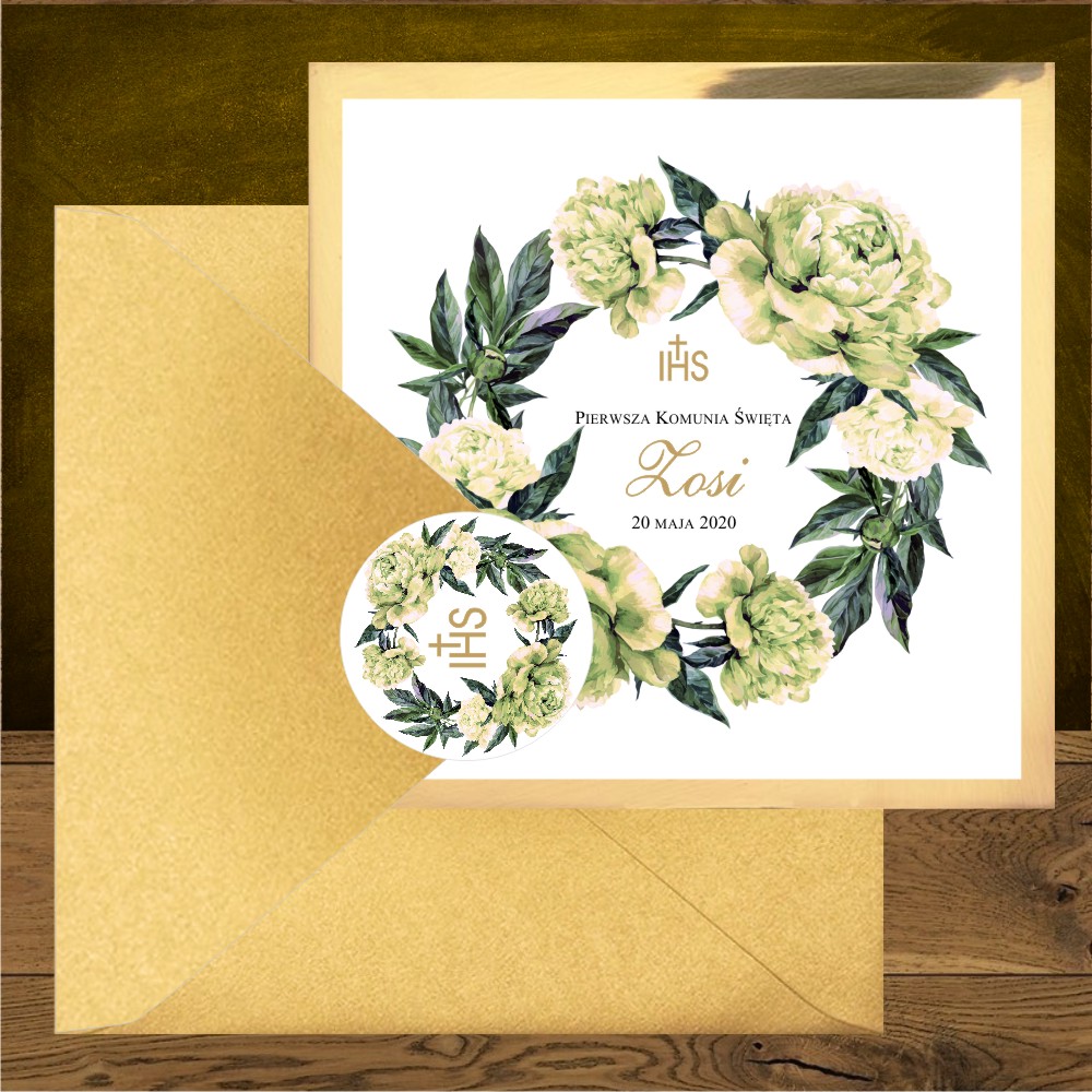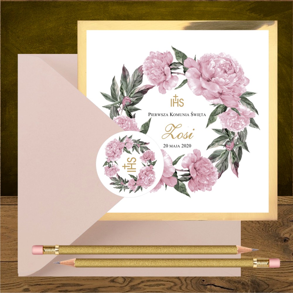 Eleganckie wzory z motywem zielonych galązek, eukaliptusa, delikatnych pastelowych kwiatów, pięknych pastelowych piwonii. Do tego delikatny motym hostii. Całość wykonana na pięknym papierze z pięknymi kopertami.