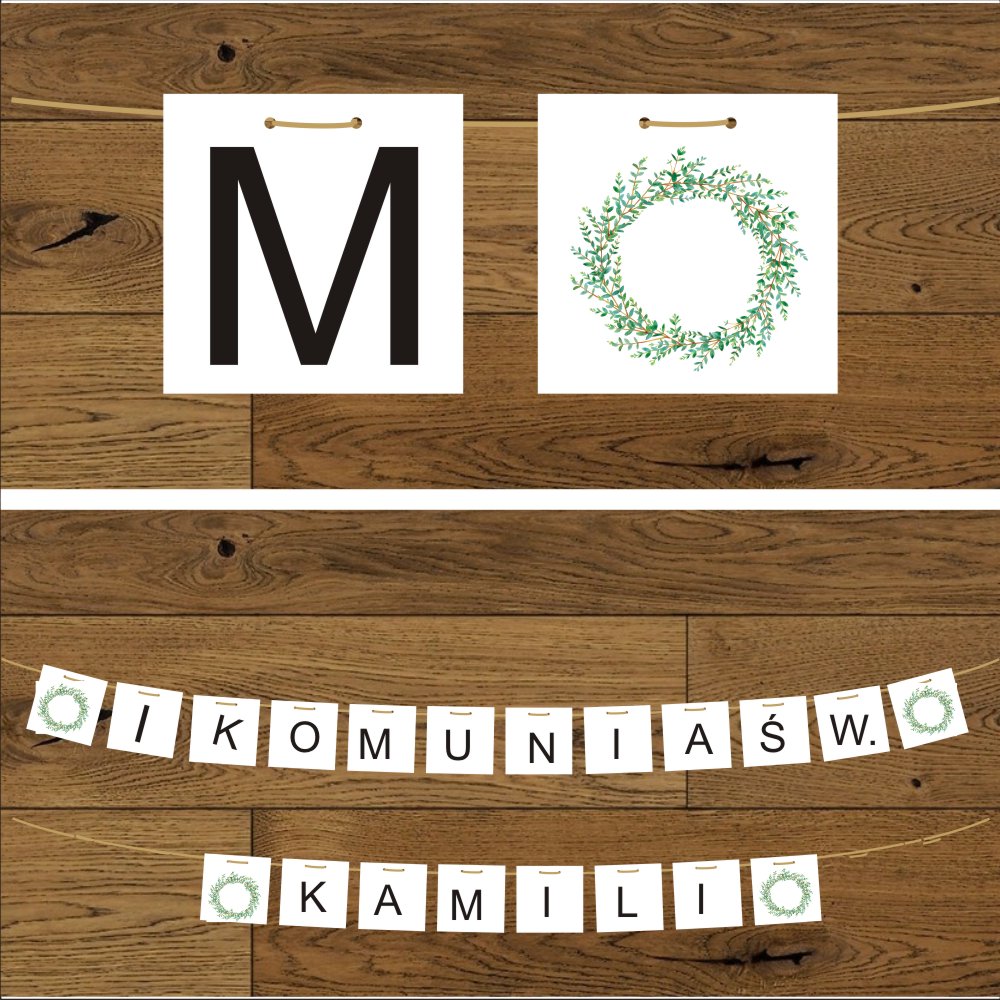 Zaproszenia na komunię proste. Wianek zielone galązki