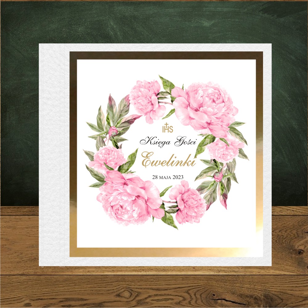 Kod wzoru: Księga Gości romantyczny różowy wianek piwonie