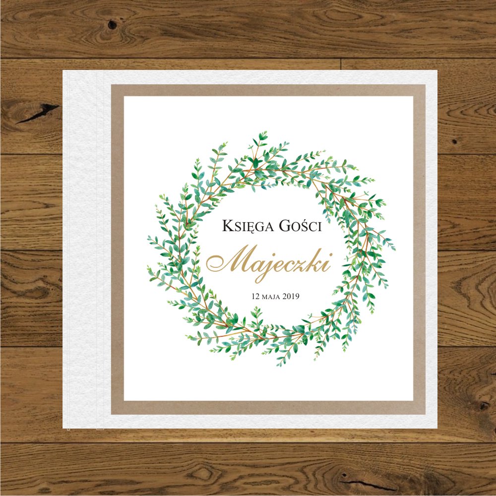 Wianek zielone gałązki. Księga biała, ramka złoty mirror