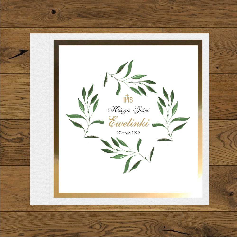 Zaproszenie komunijne Zielone gałązki delikatne i hostia w wianuszku