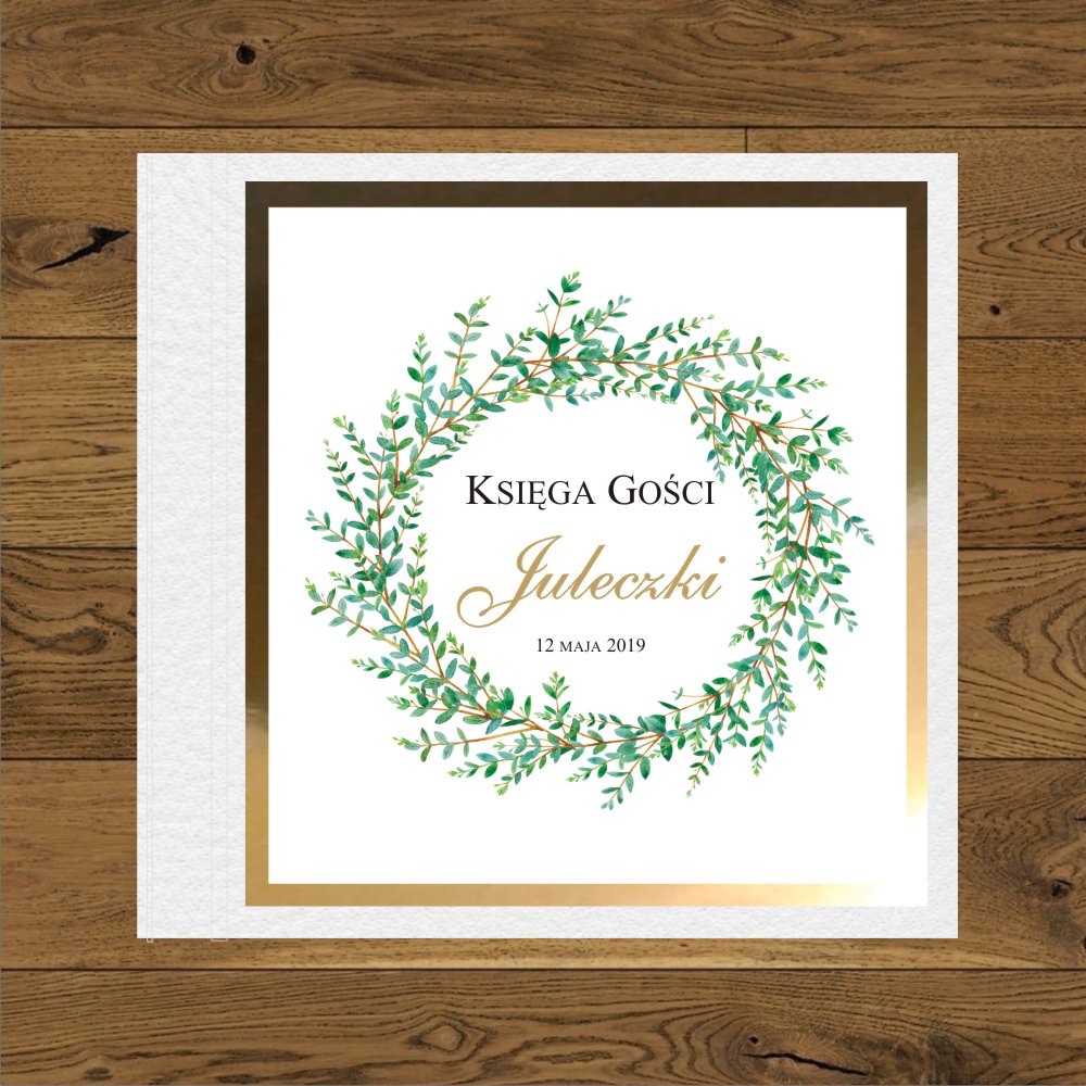 Kod wzoru: Wianek zielone gałązki. Księga biała, ramka złoty mirror