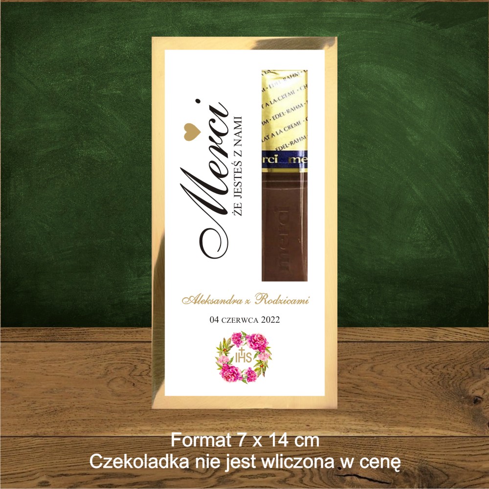 Zaproszenia komunijne rustykalne. Piwonie ciemny róż jednostronne złoty mirror