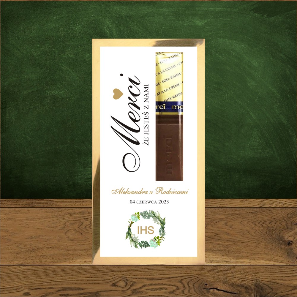 Zaproszenia komunijne w saszetce. Zielony ogród złoty mirror