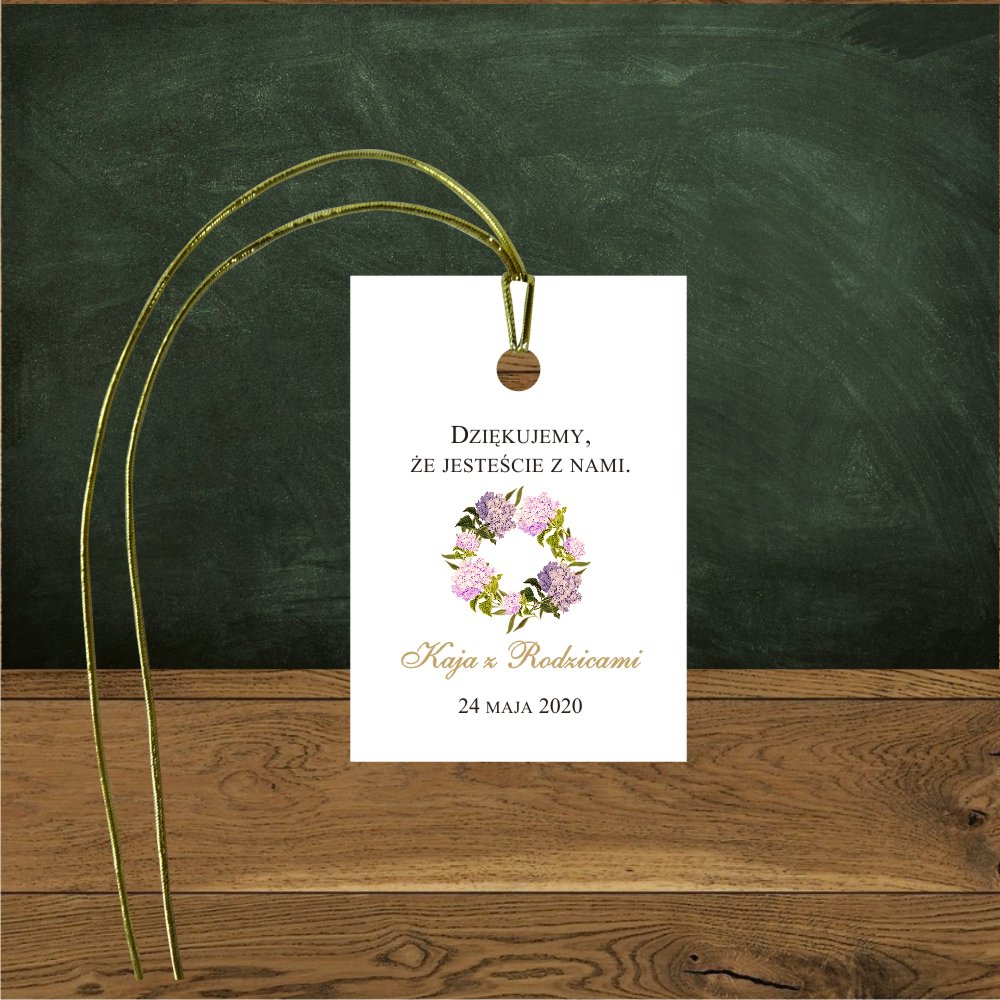 Zaproszenie komunijne Hortensje różowe w wianku