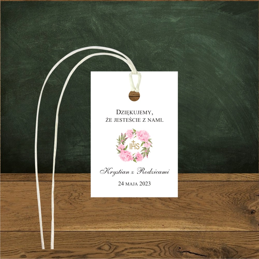 Zaproszenia komunijne proste Piwonie w wianku romantyczny różowy