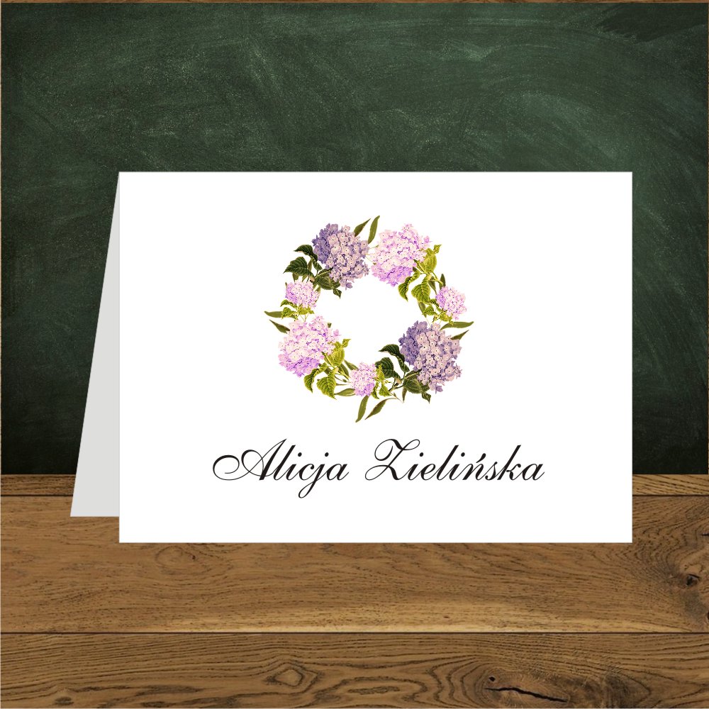 Zaproszenia na chrzest dla dziewczynki z rózowymi hortensjami w wianku