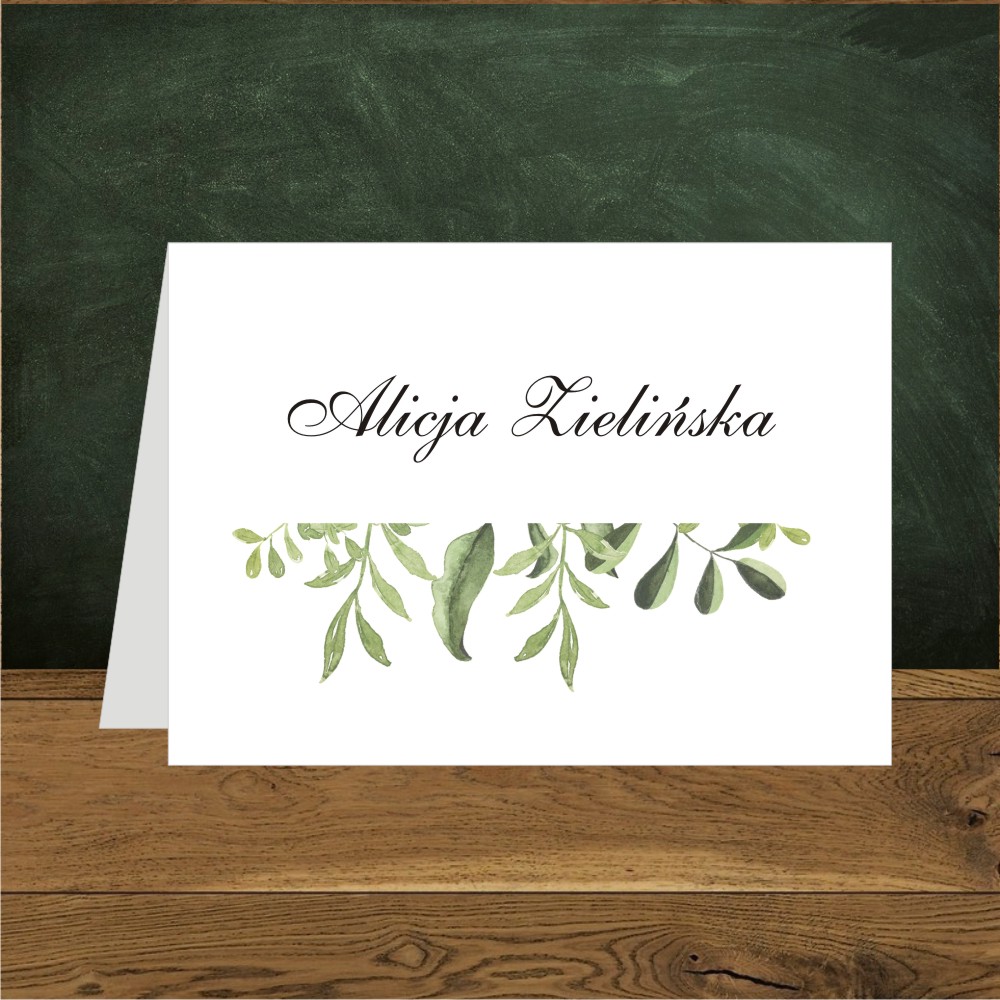 Zaproszenia na chrzest zielone listki i serduszko mini