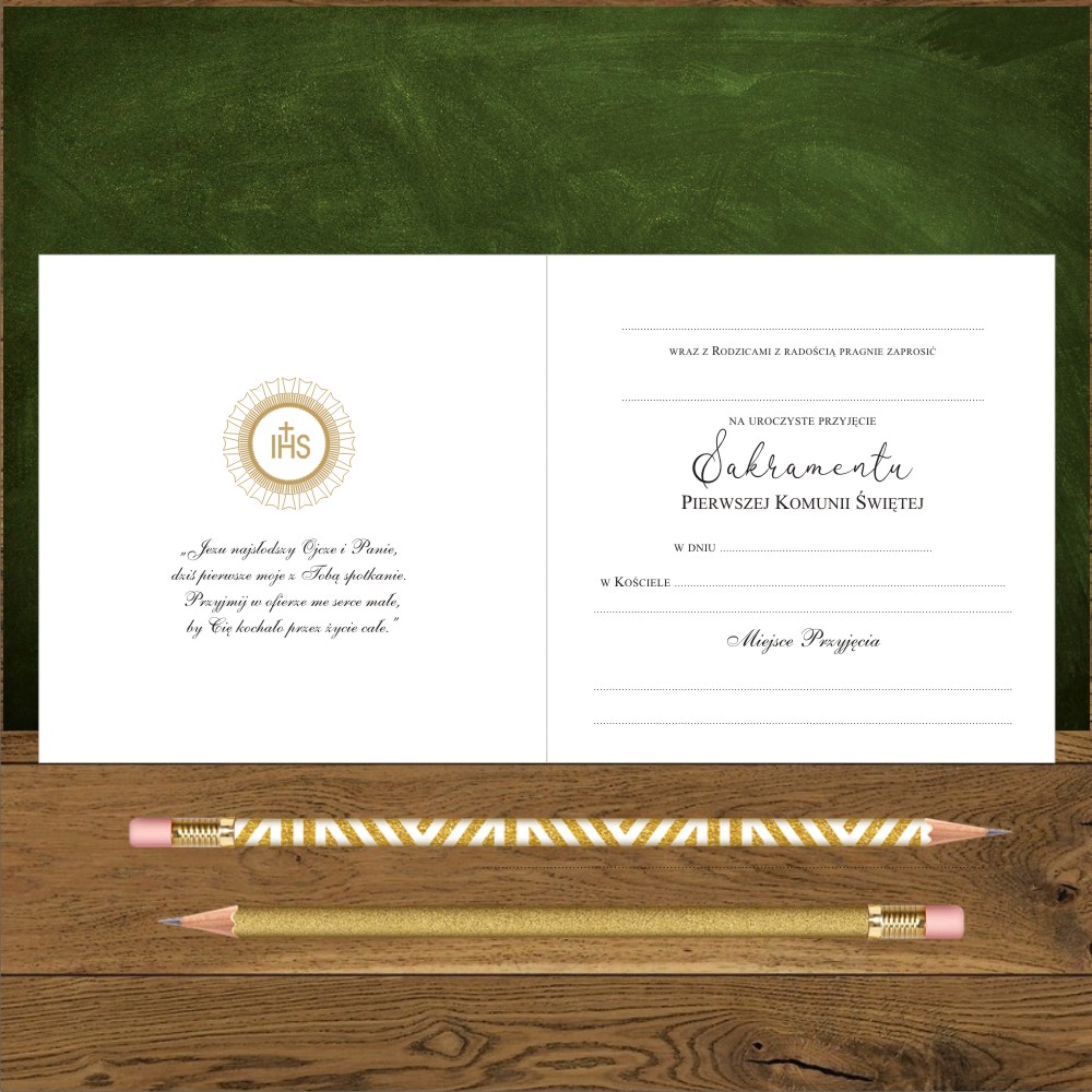 Kod wzoru: Zaproszenia komunijne do wypisania - Hostia Złota