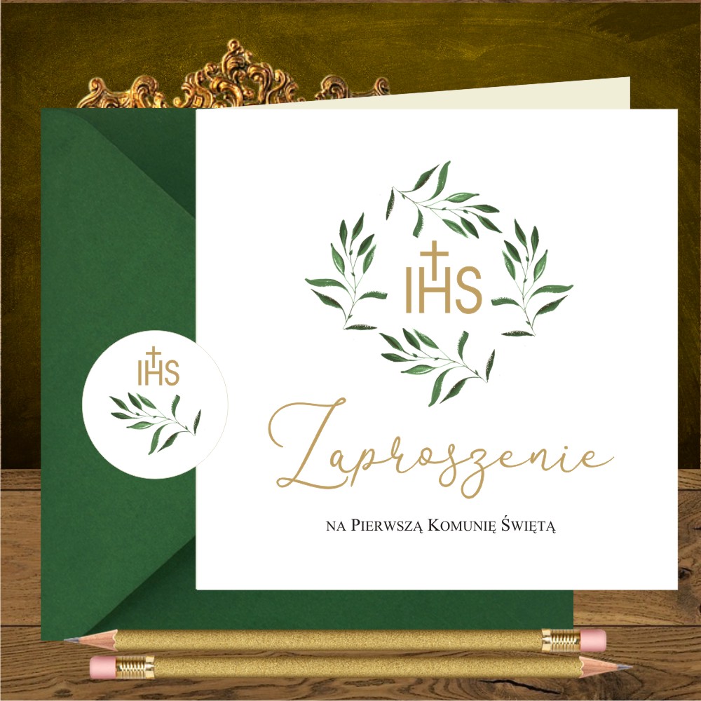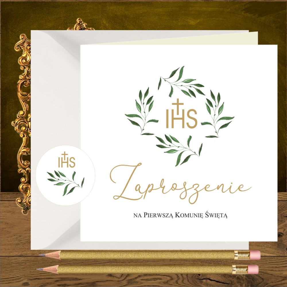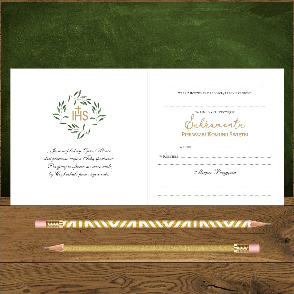 Kod wzoru: Zaproszenia komunijne do wypisania - Zielone gałązki delikatne
