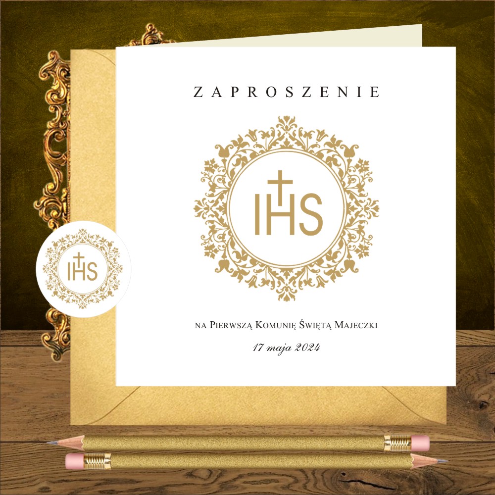 Kod wzoru: Zaproszenia Hostia zlota fantazyjna proste