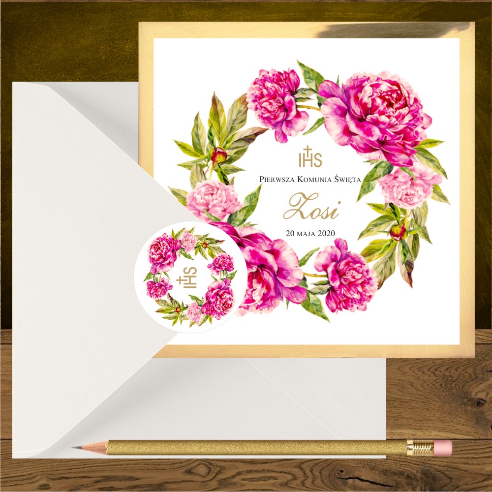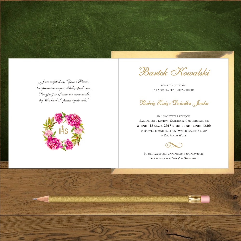 Kod wzoru: Zaproszenia Komunia Świeta. Piwonie ciemny róż