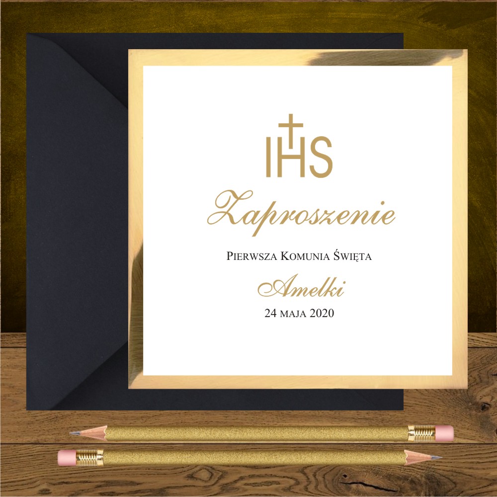 Kod wzoru: Zaproszenia komunijne. Minimalistyczne . Klasyczne złote