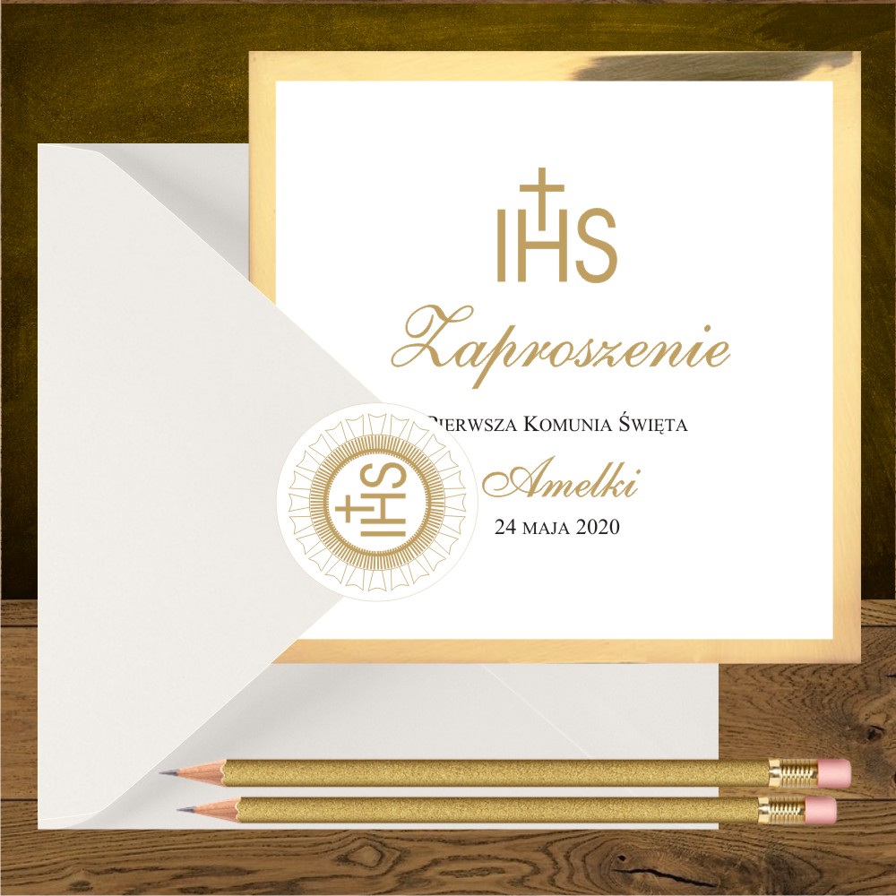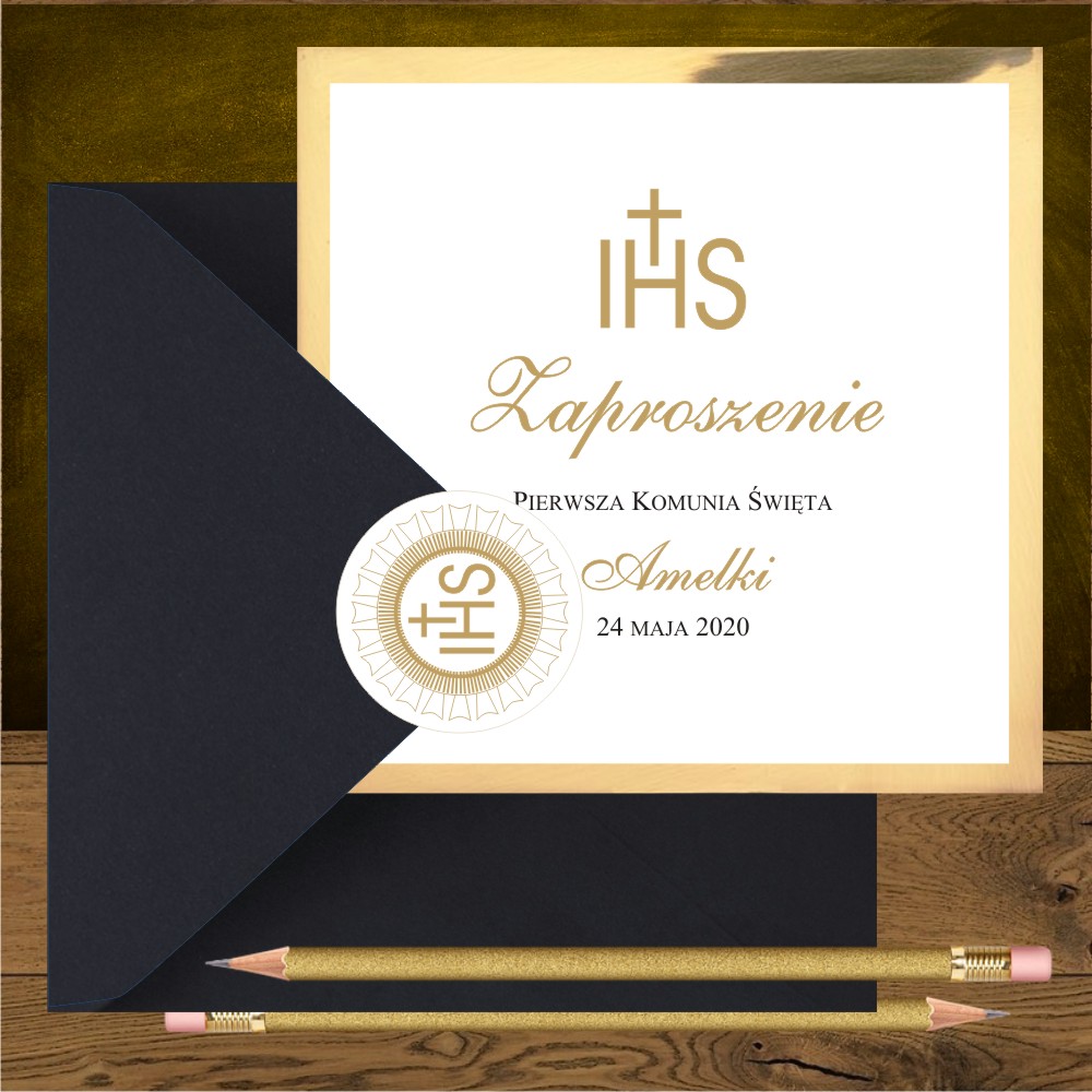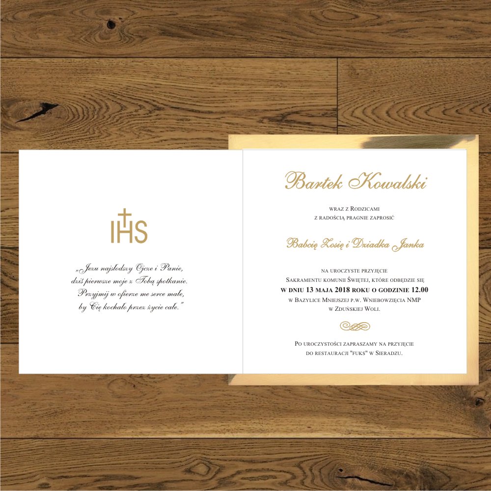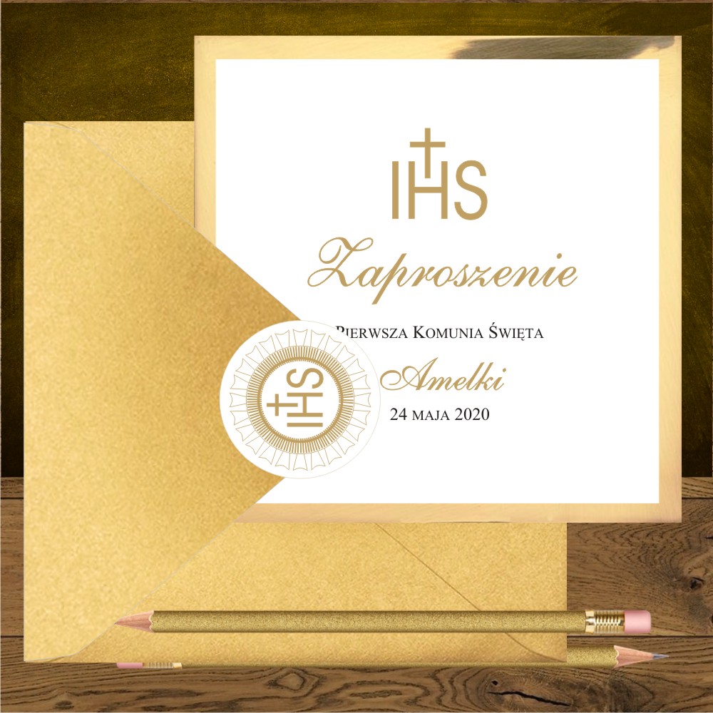 Zaproszenia na komunię. Hostia złota