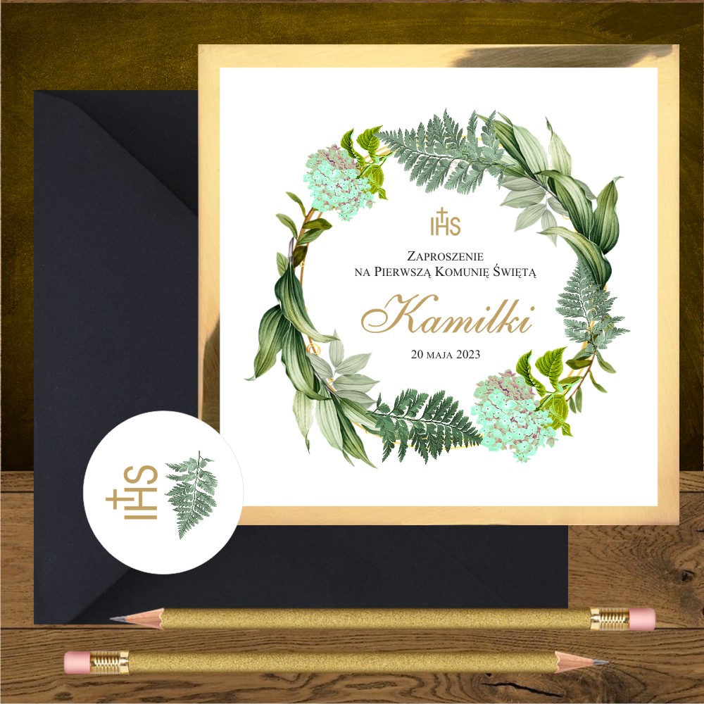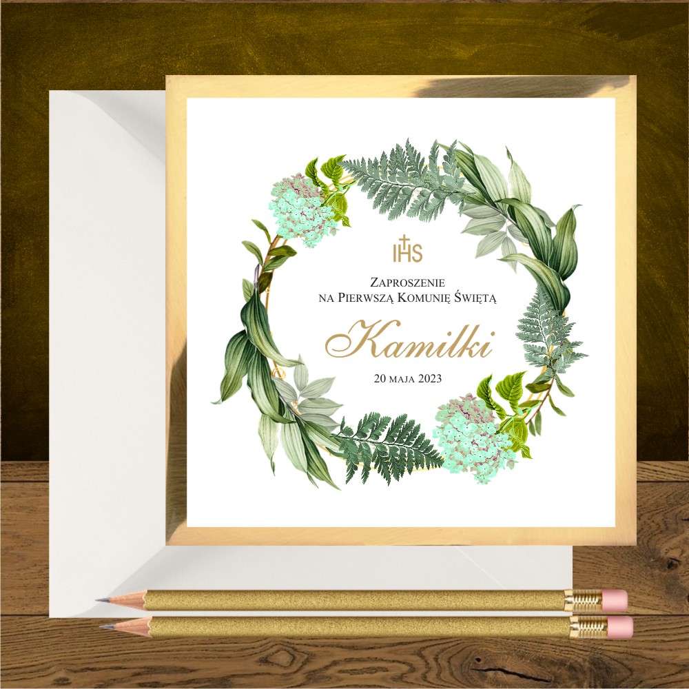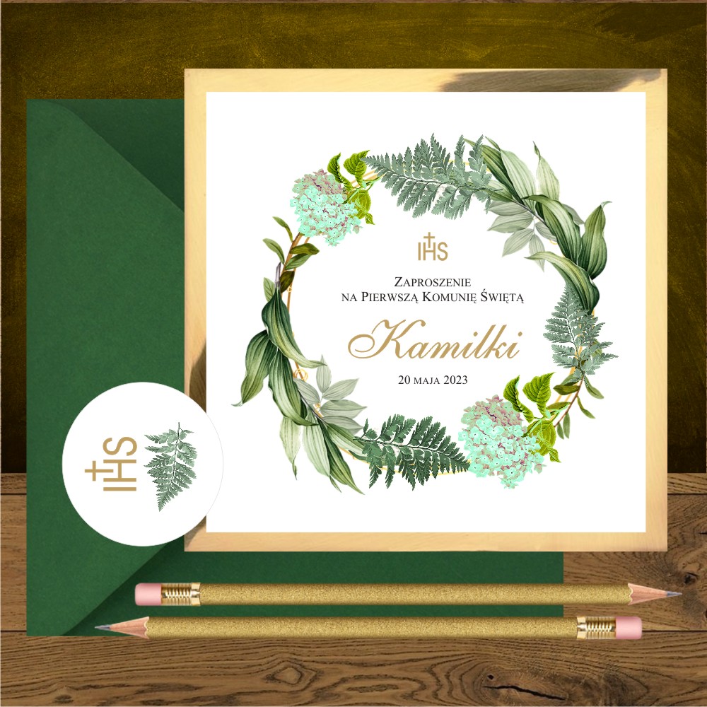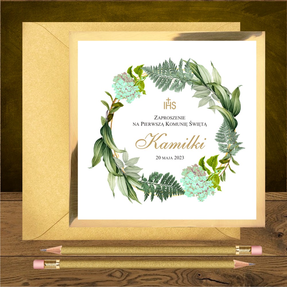 Kod wzoru: Zaproszenia komunijne zielony ogród