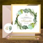 Zaproszenia komunijne Zielony Ogród Złoty mirror i wyklejenie