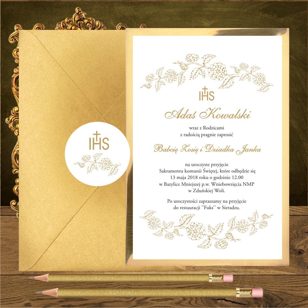 Kod wzoru: Zaproszenia komunijne. Złote girlandy