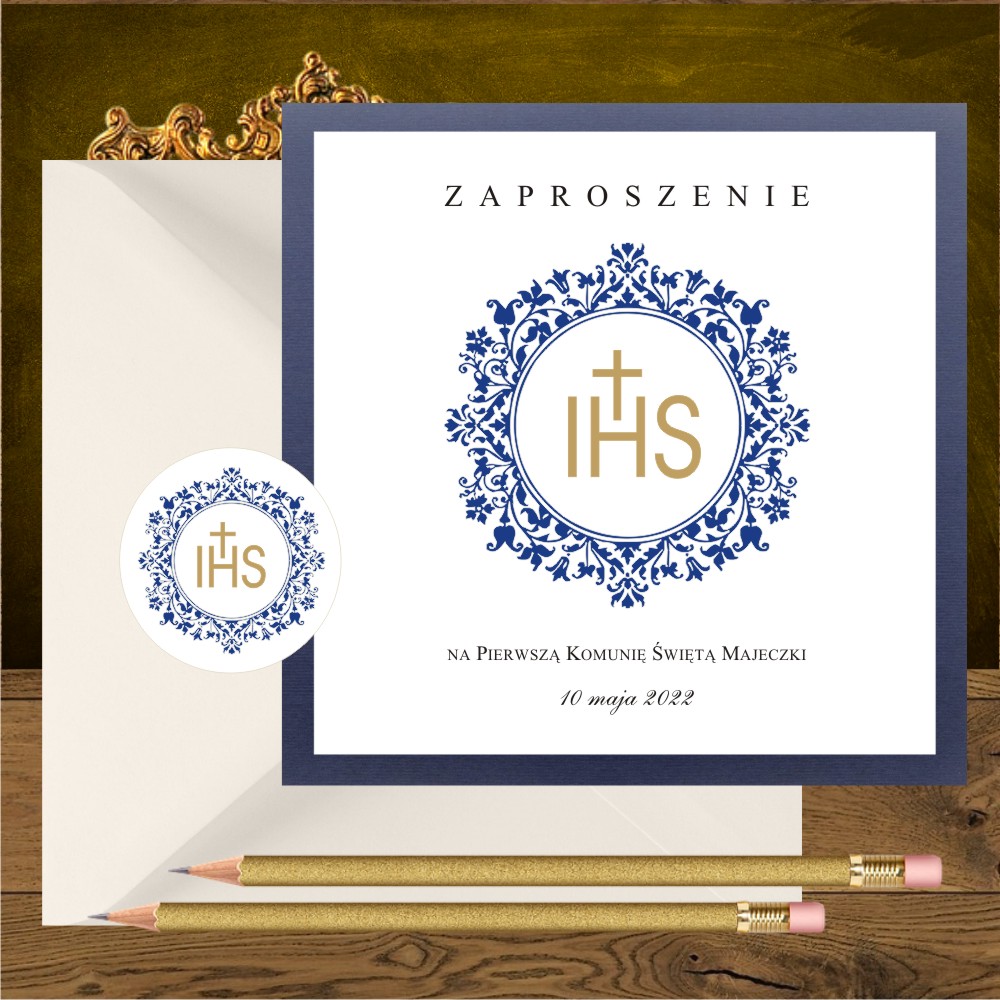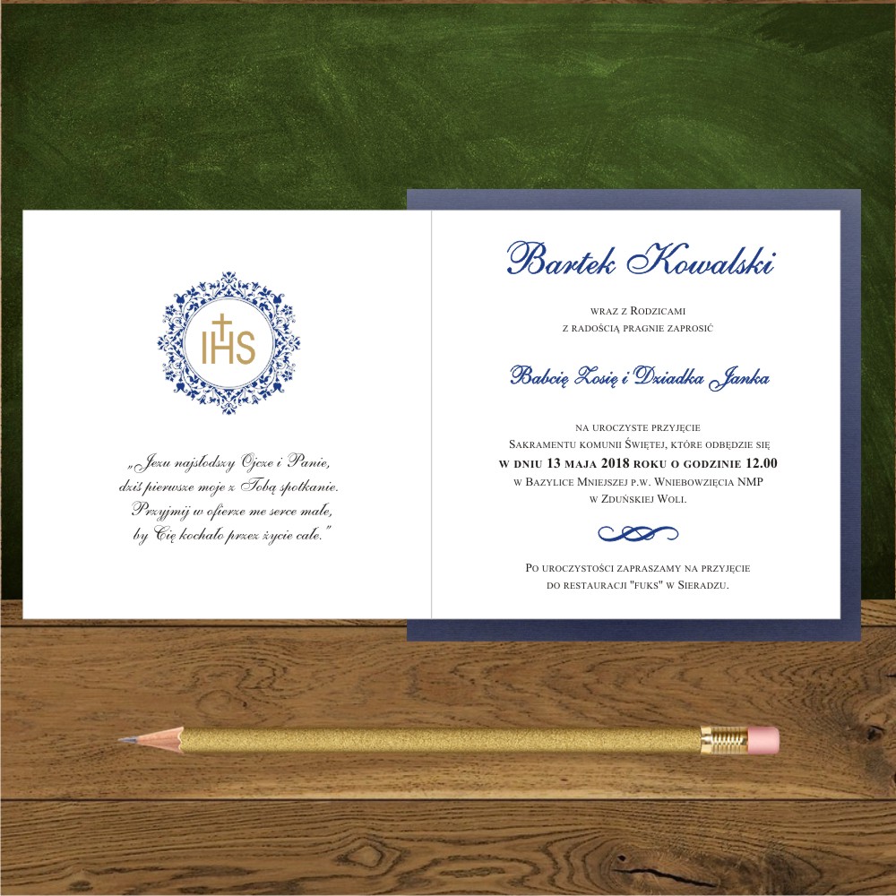 Kod wzoru: Zaproszenia z hostią granatową na granatowym tle