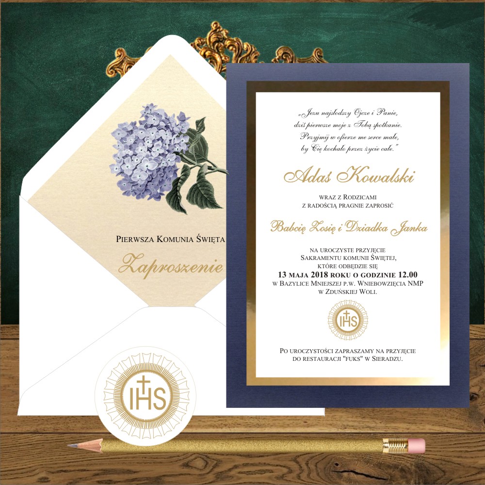 Zaproszenia komunijne. Minimalistyczne . Klasyczne złote
